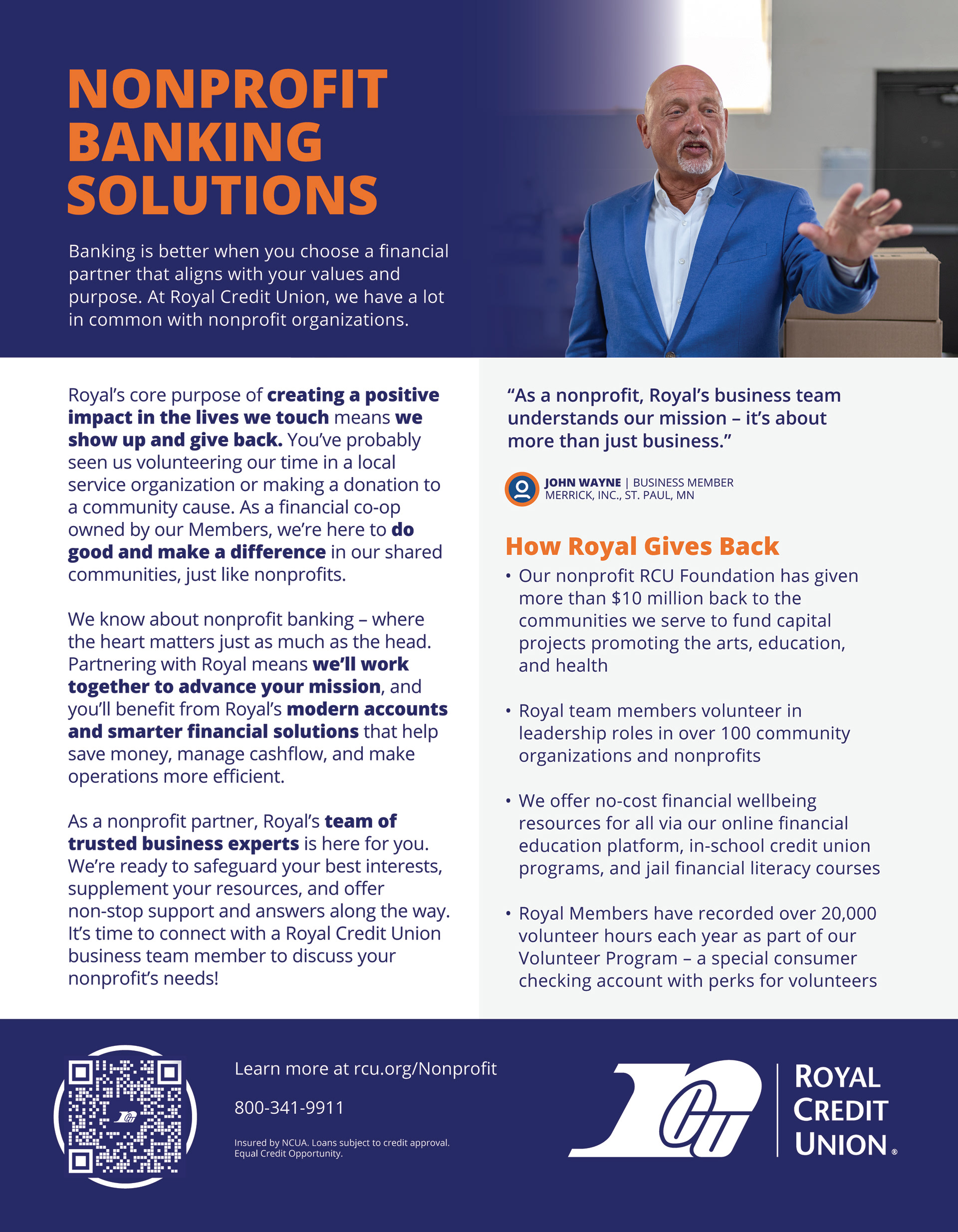 Royal Credit Union is a not-for-profit financial institution proudly serving over 300,000 Members across Minnesota and Wisconsin. For more than 60 years, Royal has been guided by a strong purpose and values, creating meaningful impact through trusted financial services and a commitment to community.